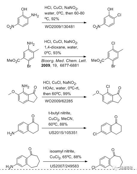 另外,該反應(yīng)與變成羥基的試劑咋看很類似,區(qū)別就是前者是在硫酸的水溶液加熱發(fā)生羥基取代,后者是在濃硫酸的環(huán)境中脫除反應(yīng),或是有硫酸銅或銅粉的催化,或是在亞磷酸的還原氣氛中脫除。
